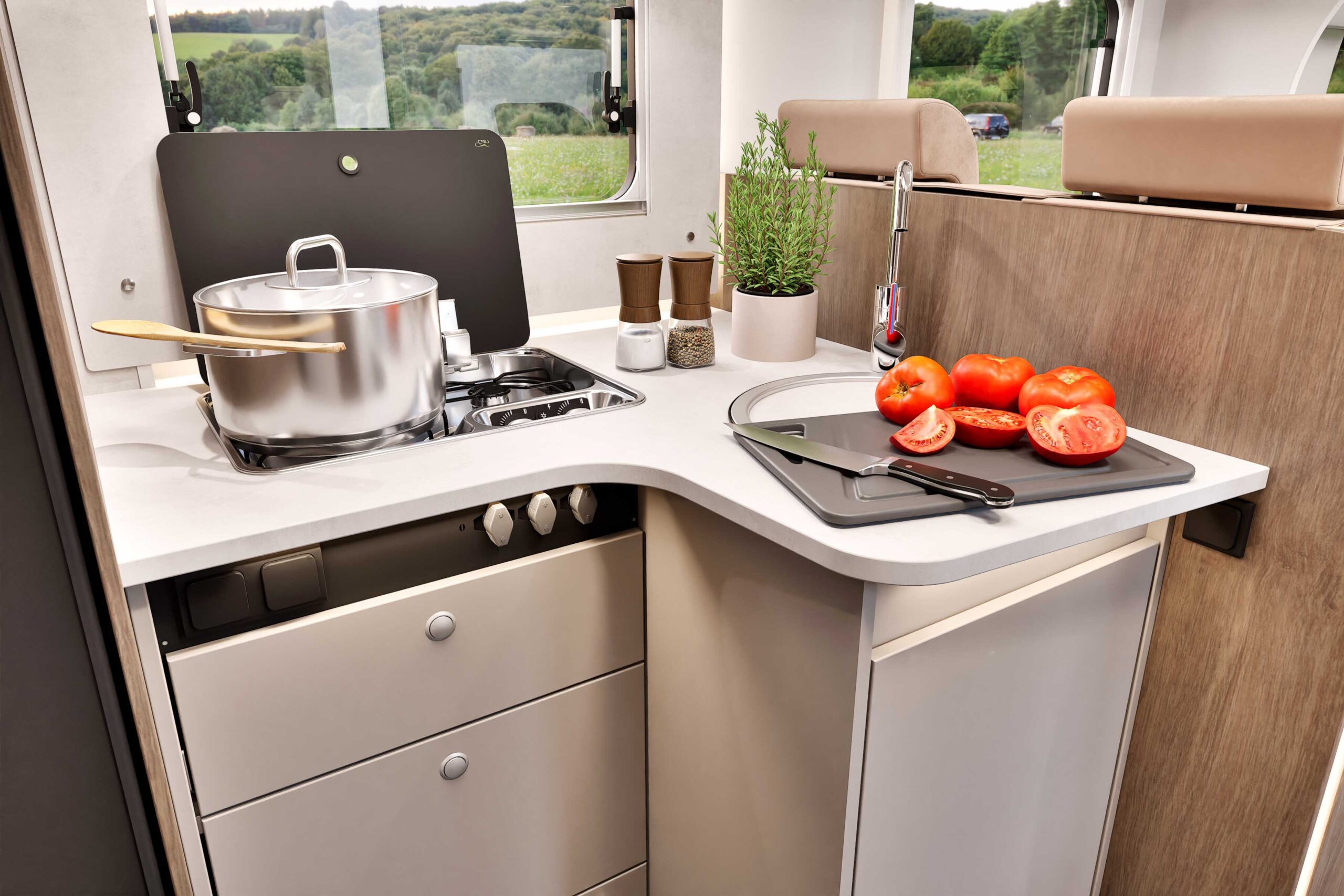 Startpakke kr. 899,- Gemmengang af autocamperen før udlejning, 11 kg. Gas, 5 Stk. toilettaps, 2 ruller opløseligt toiletpapir, udvendig vask.